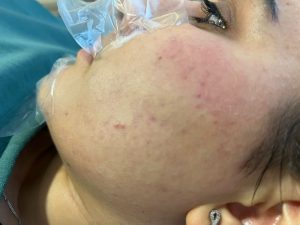 همزمان، کوکتلهای مزوتراپی شامل ویتامینها، هیالورونیک اسید و مواد مغذی وارد پوست میشوند.